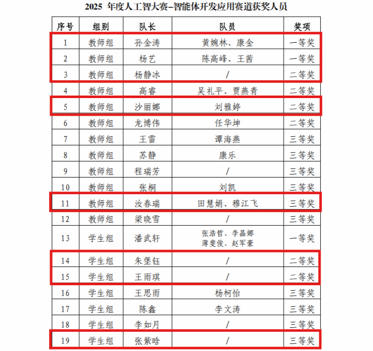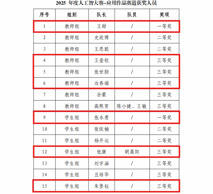 此次获奖充分展现了我院人工智能领域的教学实力与师生综合素养,是学院坚持实践育人、注重创新培养的直观成果。未来学院将继续深耕AI学科建设,鼓励师生深化技术研发与应用实践,持续提升人才培养质量与学科核心竞争力。