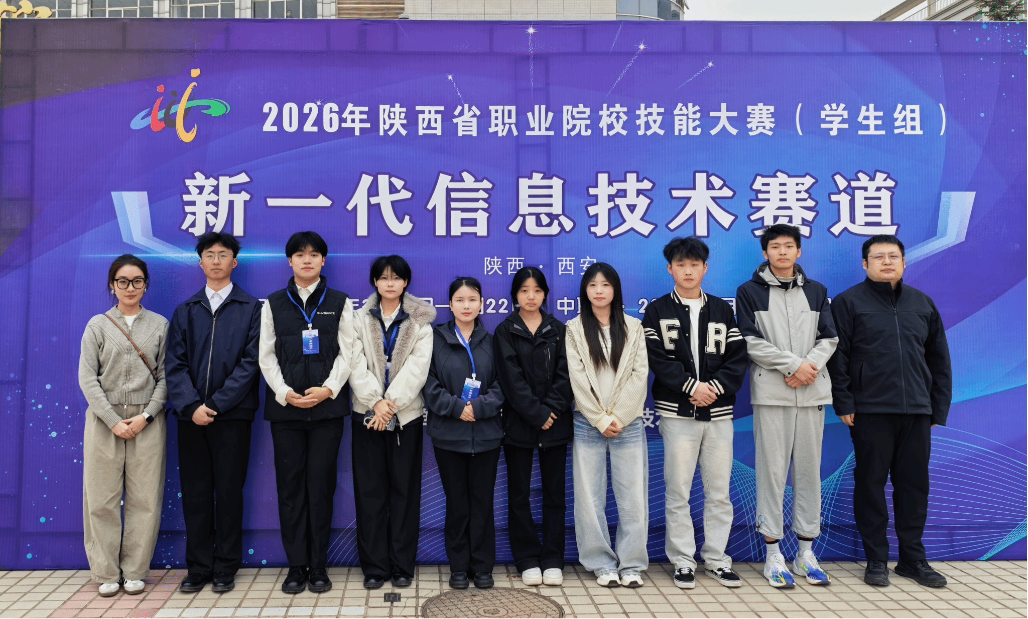 3月19日至22日,由陕西省教育厅主办、陕西国防工业职业技术学院承办的2026年陕西省高等职业院校技能大赛“新一代信息技术”赛道在陕西国防工业职业技术学院举行。该赛事聚焦新一代信息技术前沿领域,共有来自全省高职院校的57支队伍参赛。我院选派2支队伍,由教师任朝辉、孙金涛带队,马姝轩、王婷、刘龙彬、张宇航、赖善权、李艳、张译文、杨一帆八名学生代表学校参赛。