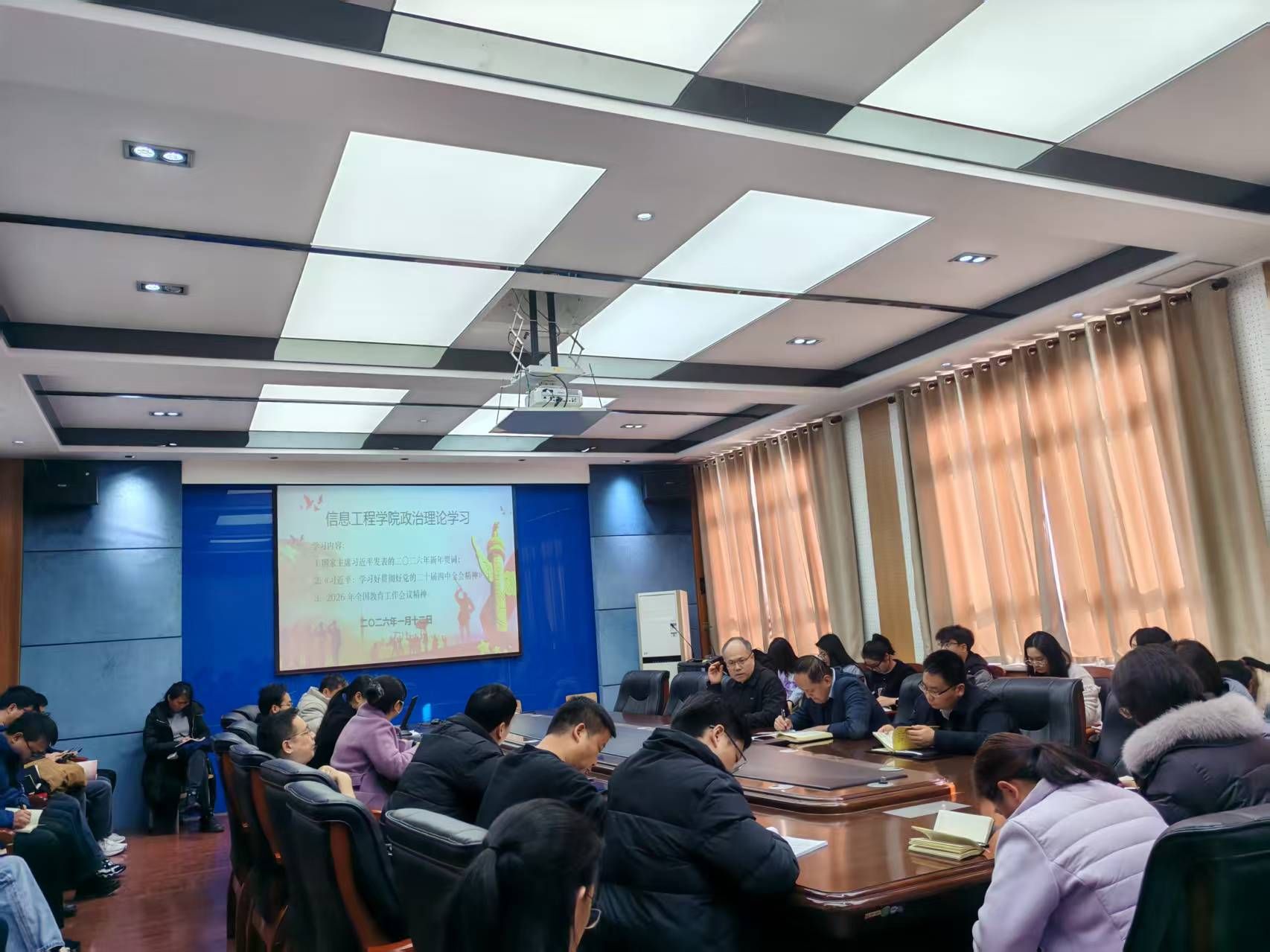1月12日下午,信息工程学院党总支组织全体教职工在秦风楼四楼会议室开展政治理论学习。