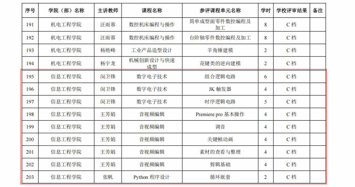 信息工程学院将以本次 “金课” 建设为重要抓手,充分发挥精品课程在教育教学改革、师资队伍建设中的示范引领与辐射带动作用。学院将紧扣新时代教育教学改革创新要求,持续提升课程建设的精准性与吸引力,切实把 “金课” 建设作为落实立德树人根本任务的关键载体。