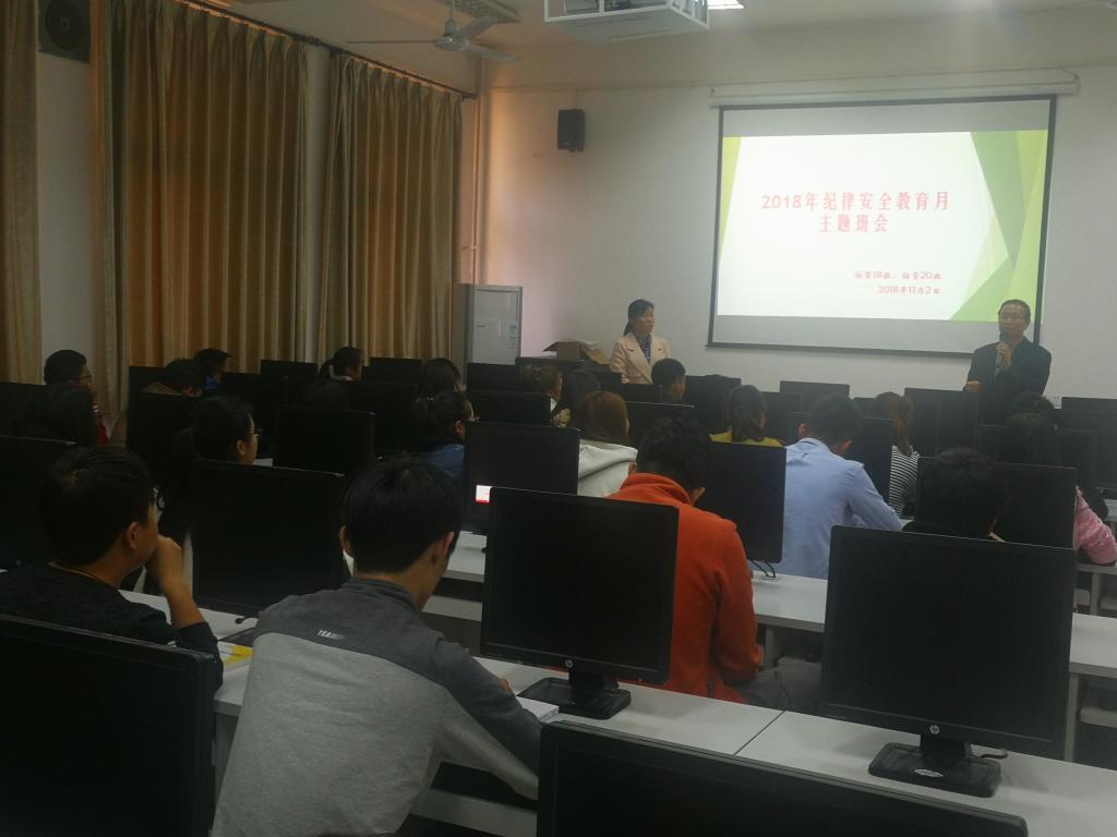 在近期的学生学籍处理中,计算机信息管理17018班有多人受到留级处分、多人处于留级边缘,为了警示班级其他同学,进一步加强学生纪律意识教育,增强学生学习的自觉性,11月2日下午,信息工程分院计算机信息管理17018班、17020班联合组织全体同学在实训楼5楼软件实训室召开纪律警示教育主题班会。信息工程分院党总支书记高掌平、学生工作办公室相关人员、计算机信息管理17018、17020班班主任及班级全体学生参加了班会。