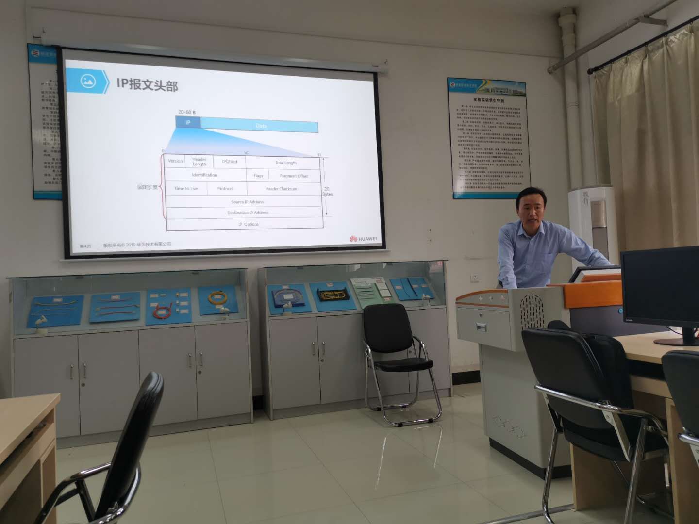 网络教研室邀请企业工程师在网络技术实验室为全体教研室成员做“华为1+X网络系统建设与运维”线下培训,主要针对1+X证书制度、华为1+X证书的基本内容和知识体系进行了深入解读和分析。