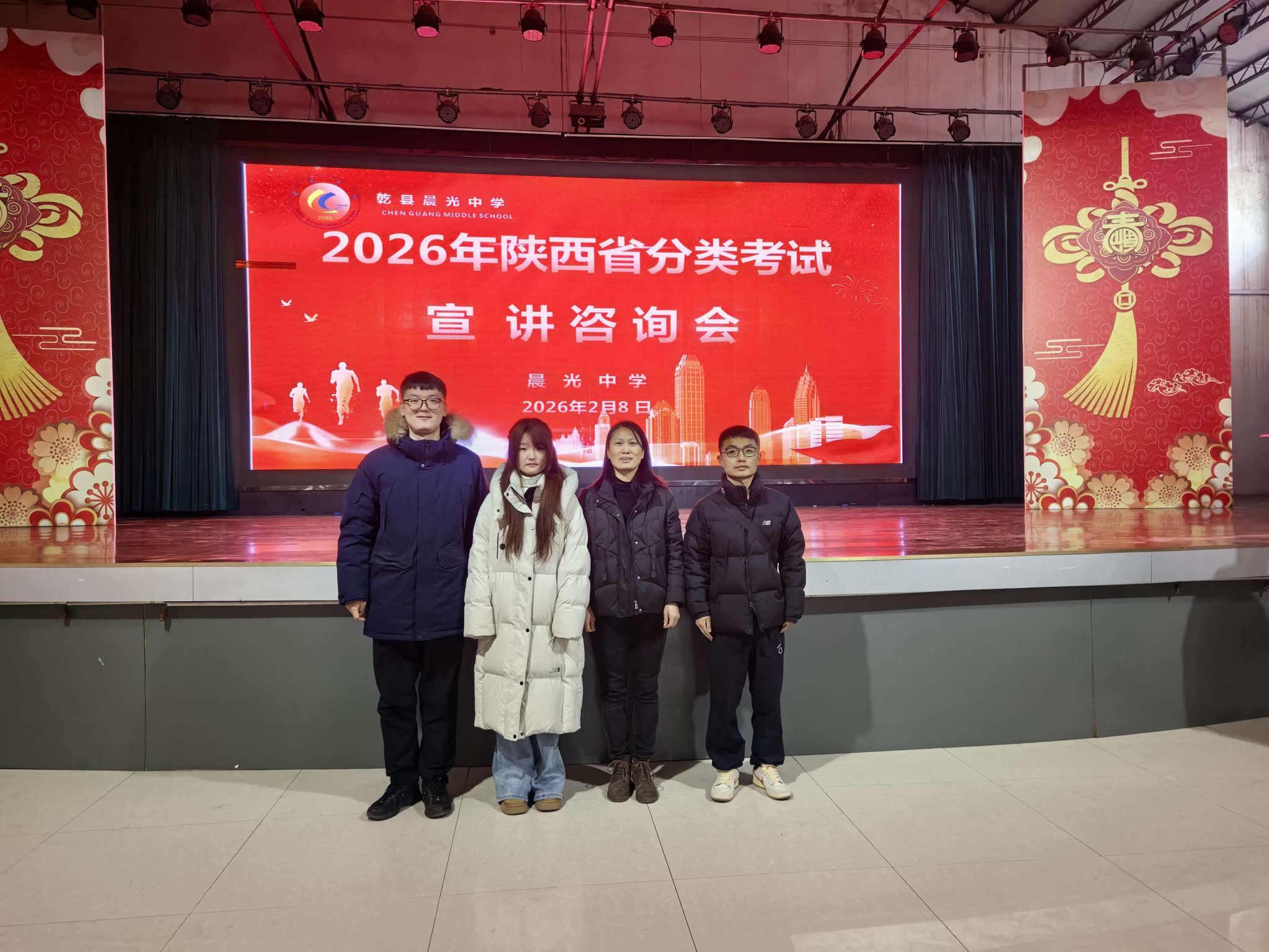 2月8日,我院招生团队赴乾县晨光中学开展交流活动。张齐、李宣荣、王昊宇三位老师和学生志愿者通过现场宣讲、专业咨询等方式,向中学师生详细介绍了我院办学特色,专业设置及招生政策。双方就中高职衔接、人才培养等议题进行了深入探试,为后续合作奠定了良好基础。