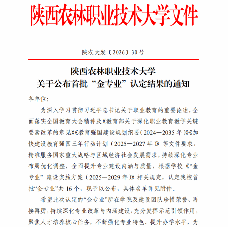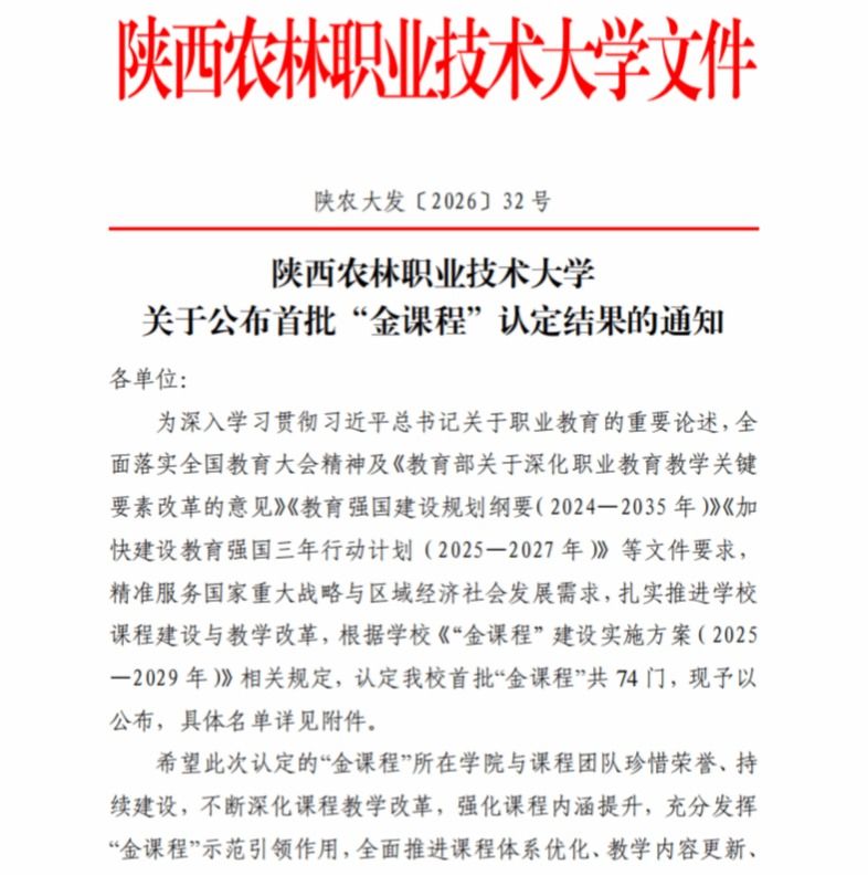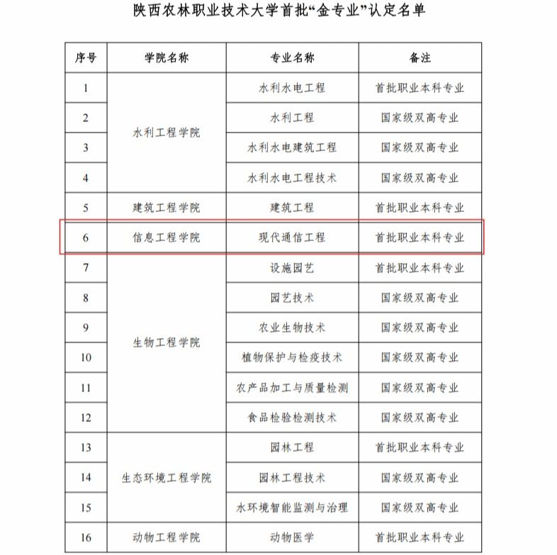 4月3日,陕西农林职业技术大学正式发布首批“金专业”“金课程”认定结果。经学校严格评审、层层遴选,我院现代通信工程专业成功入选学校首批“金专业”名单,《计算机组装与维护》等六门课程顺利跻身首批“金课程”行列。