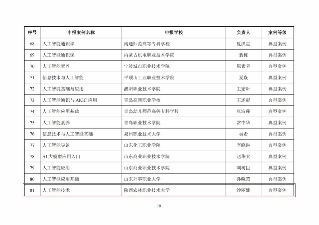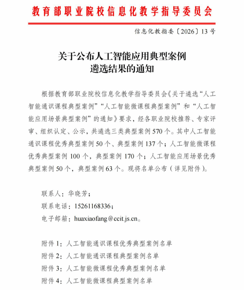 4月9日,教育部职业院校信息化教学指导委员会发布公示了人工智能相关典型案例遴选结果,我院教师沙丽娜负责的《人工智能技术》案例获评教育部“人工智能通识课程”典型案例。